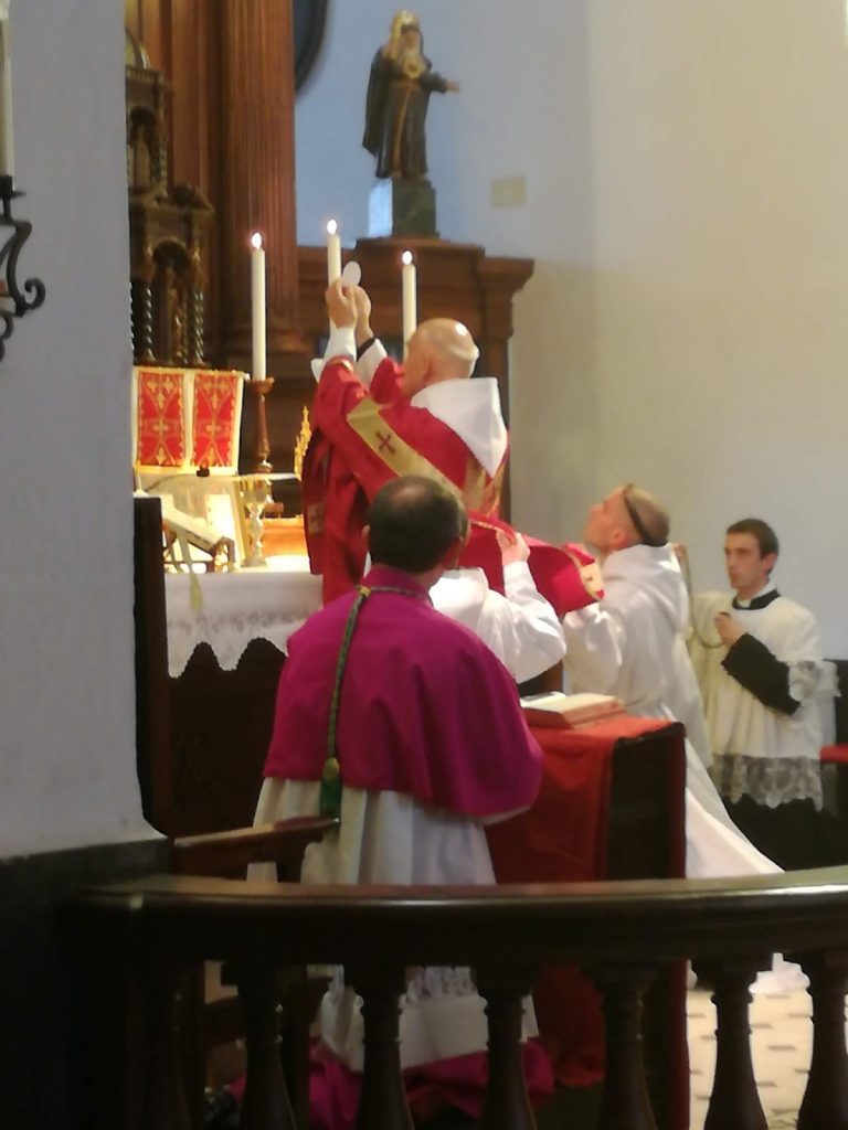Samedi 24 août, Mgr Antonio Suetta, évêque de Vintimille-Sanremo, a acceuilli officiellement la communauté dans son diocèse : « Je rejoins la paroisse de Taggia, qui, je le sais, est très heureuse de voir ré-ouvrir ce couvent ainsi que de le voir habiter par une communauté religieuse. Je remercie les pères capucins pour leur bienveillance de leur volonté de transmettre leur couvent à la fraternité bénédictine. Je souhaite la bienvenue à cette communauté dans notre diocèse avec un grand plaisir et en tant que cadeau du Seigneur. Ce sont des témoins et des gardiens de la plus ancienne tradition de l’Eglise. Je crois que leur présence peut faire du bien à nos fidèles. » Le Père Jehan se félicite de poursuivre les 400 ans de vie religieuse dans ce couvent.