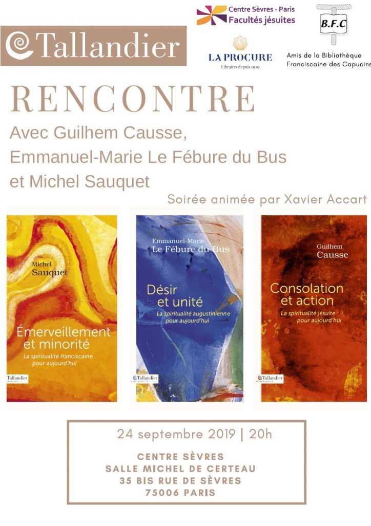 Mgr Emmanuel-Marie, Abbé de l’Abbaye Sainte-Marie de Lagrasse (Chanoines Réguliers de la Mère de Dieu) vient de publier un nouvel ouvrage : Désir et unité, La spiritualité augustinienne pour aujourd’hui (Ed. Tallandier). Il participera à une table ronde organisée par les Editions Tallandier le mardi 24 septembre à 20h au Centre Sèvres (Paris 6è).