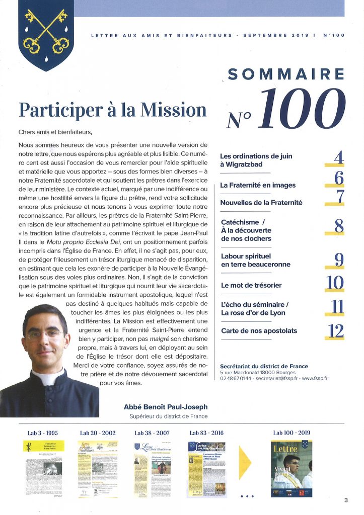 Nous avons évoqué il y a quelques semaines le changement de présentation annoncé de la lettre aux Amis et Bienfaiteurs de la Fraternité Saint-Pierre en France.