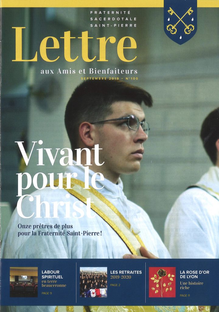 La lettre vient d’être publiée vous y retrouverez toute l’actualité de la Fraternité Saint-Pierre en France et en Belgique (télécharger la lettre) :