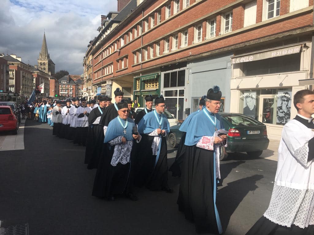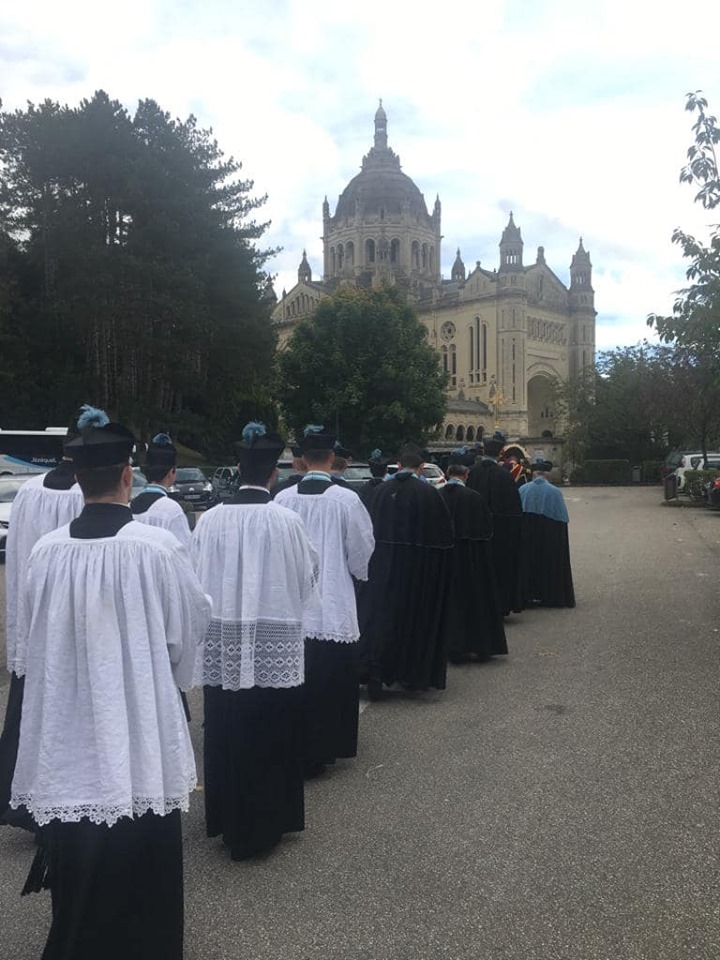 Samedi 12 octobre avait lieu le pèlerinage à Lisieux pour les vocations de l’Institut du Christ Roi. La messe solennelle a été célébrée à la à la cathédrale Saint-Pierre de Lisieux par Mgr Schmitz, vicaire général de l’Institut du Christ Roi Souverain Prêtre. Les pèlerins ont fait procession dans les rues de la ville vers la Basilique Sainte-Thérèse de l’Enfant Jésus pour le salut du Saint Sacrement.