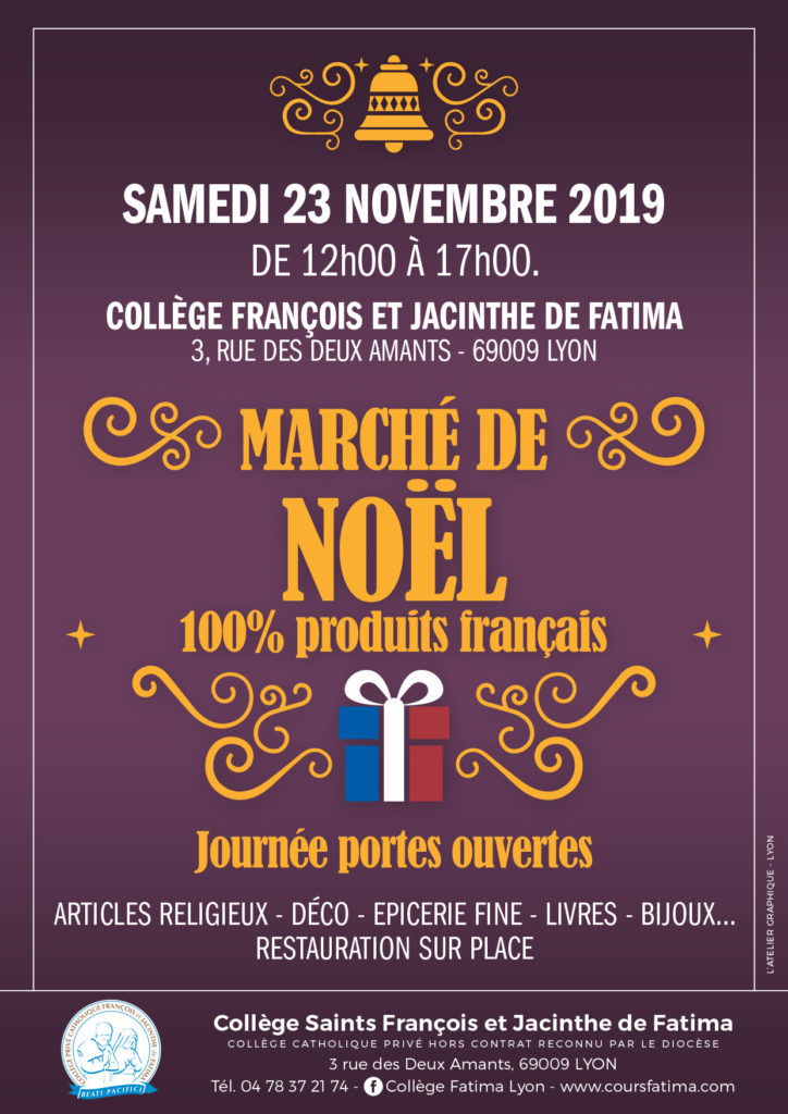 Le Collège François et Jacinthe de Fatima vous invite à son Marché de Noël le 23 novembre.