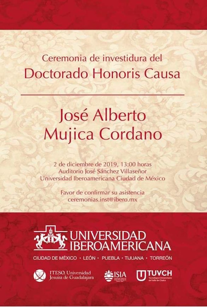Ce 2 décembre, l’Universidad Iberoamericana (IBERO) de la ville de Mexico, dirigée par les Jésuites, accordera, lors d’une cérémonie publique, un doctorat honoris causa à José Alberto Mujico Cordano. Le récipiendaire n’est autre que l’ancien Président de l’Uruguay (du 1er mars 2010 au 1er mars 2015). Dans son communiqué de presse, l’université jésuite reconnaît que Mujica « fut le promoteur de la légalisation de l’avortement, du mariage [sic !] entre personnes de même sexe et de la marihuana ». Gloups ! Décidément, les Jésuites ne cesseront jamais de nous surprendre…