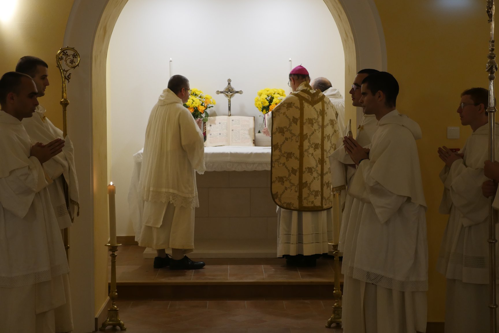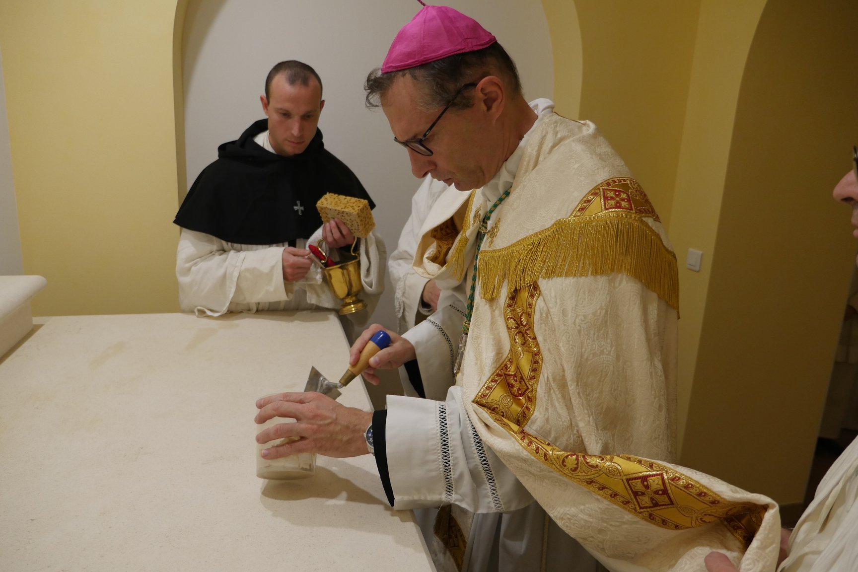 Mgr Nicolas Brouwet, évêque de Tarbes et Lourdes, est venu deux jours au Couvent Saint Thomas d’Aquin de Chémeré-le-Roi (Fraternité Saint-Vincent Ferrier). Pendant son séjour il a notamment consacré 3 autels de la crypte de l’église conventuelle.