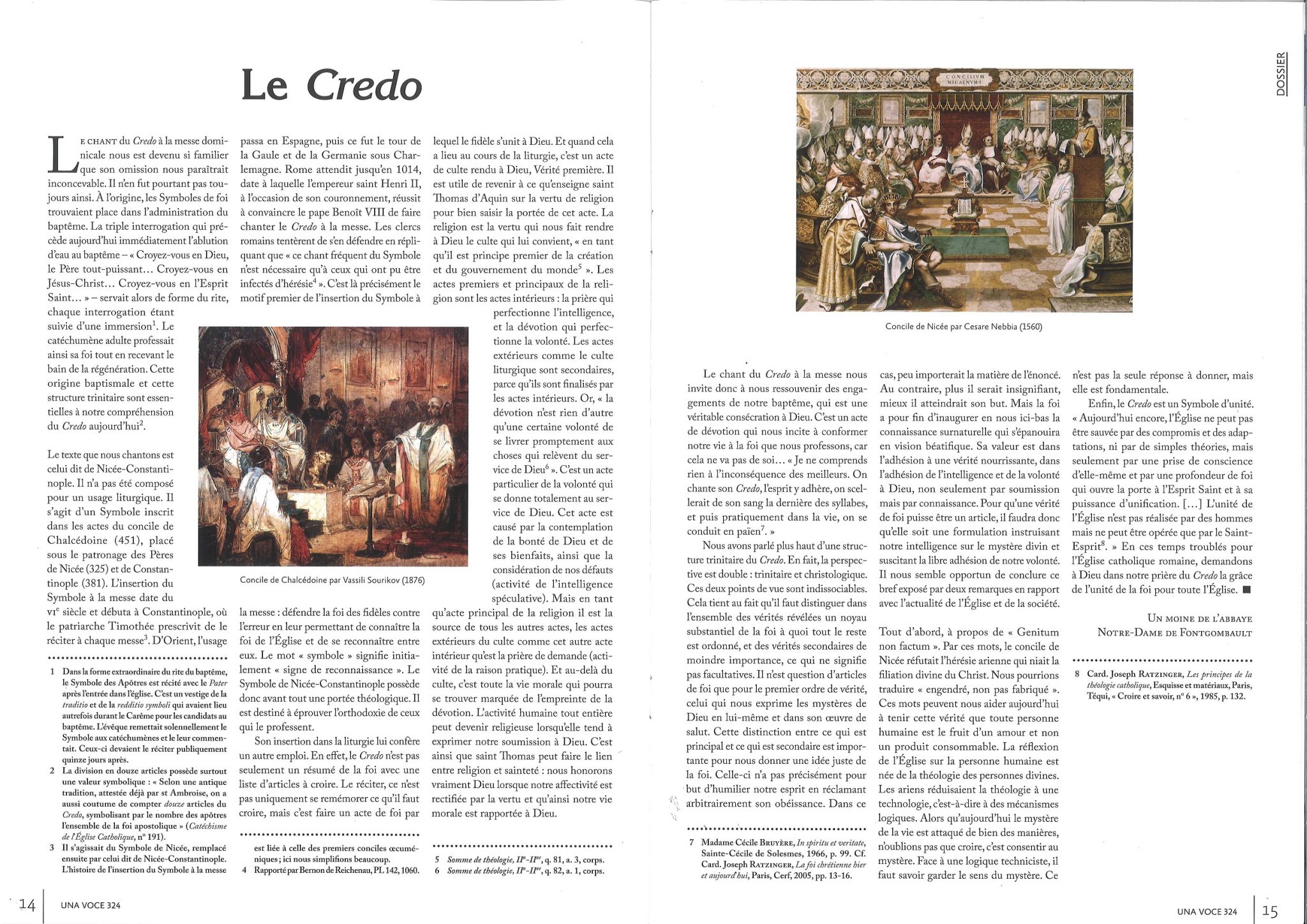 Ce numéro consacre un dossier très complet au Credo avec des contributions d’un moine de Fontgombault, de Patrick Banken (sur le Credo grégorien), d’Yves Daoudal (sur le Credo dans l’histoire de la musique) et du Père Augustin-Marie (Le Credo dans le Graduel dominicain).