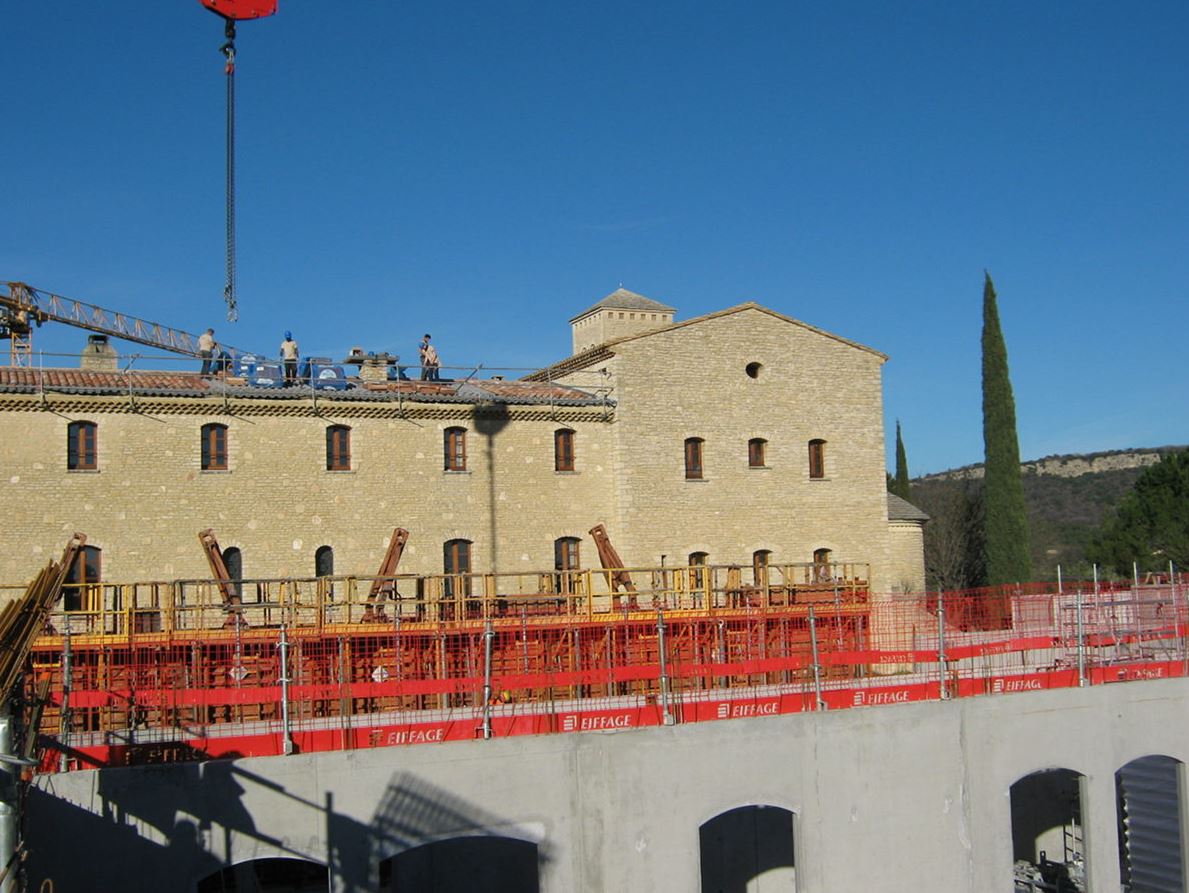 Nous avons évoqué il y a quelques mois les travaux réalisés à l’Abbaye Sainte Madeleine du Barroux pour entre autres : agrandir l’hôtellerie, la bibliothèque, l’infirmerie, le magasin également ainsi que créer un transept à l’abbatiale avec une galerie pour faciliter l’accès aux moines les plus âgés. Au total, les moines font construire plus de 4000m² de nouveaux bâtiments. Le chantier devrait s’achever dans quelques mois.