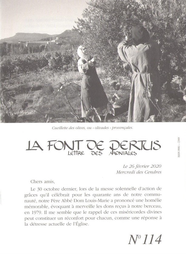 Mère Placide, abbesse de l’Abbaye Notre-Dame de l’Annonciation revient sur cet événement dans son éditorial de la lettre des Moniales ‘La Font de Pertus’ du 26 février 2020 (n°114).