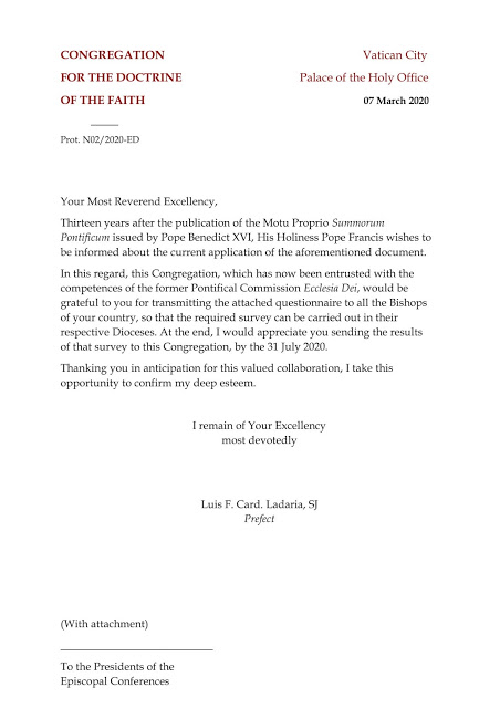 La Congrégation pour la Doctrine de la Foi, dont la Commission Ecclesia Dei est devenue une section à part entière il y a quelques mois, vient d’interroger l’ensemble des évêques à la demande du Pape François.