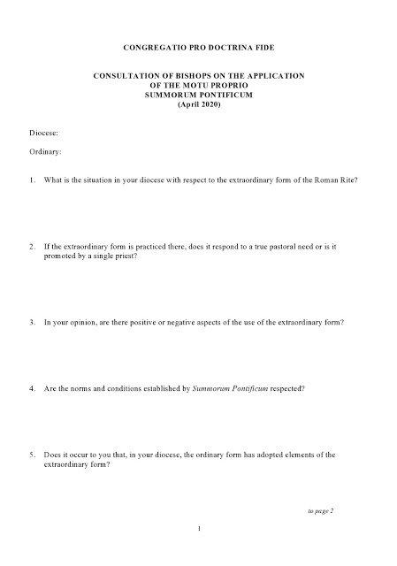 Le blog anglophone Rorate Caeli s’est procuré ce questionnaire qui, comme l’indique le blog, peut paraître assez neutre mais en y regardant plus attentivement peut avoir des conséquences si il est interprété.