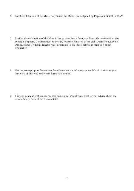 Juste un exemple: pour la question 2, la plupart des prêtres desservant plusieurs clochers, un prêtre célébrant selon le rit tridentin à la demande de ses paroissiens suffit pour maintenir ce rit dans son diocèse.