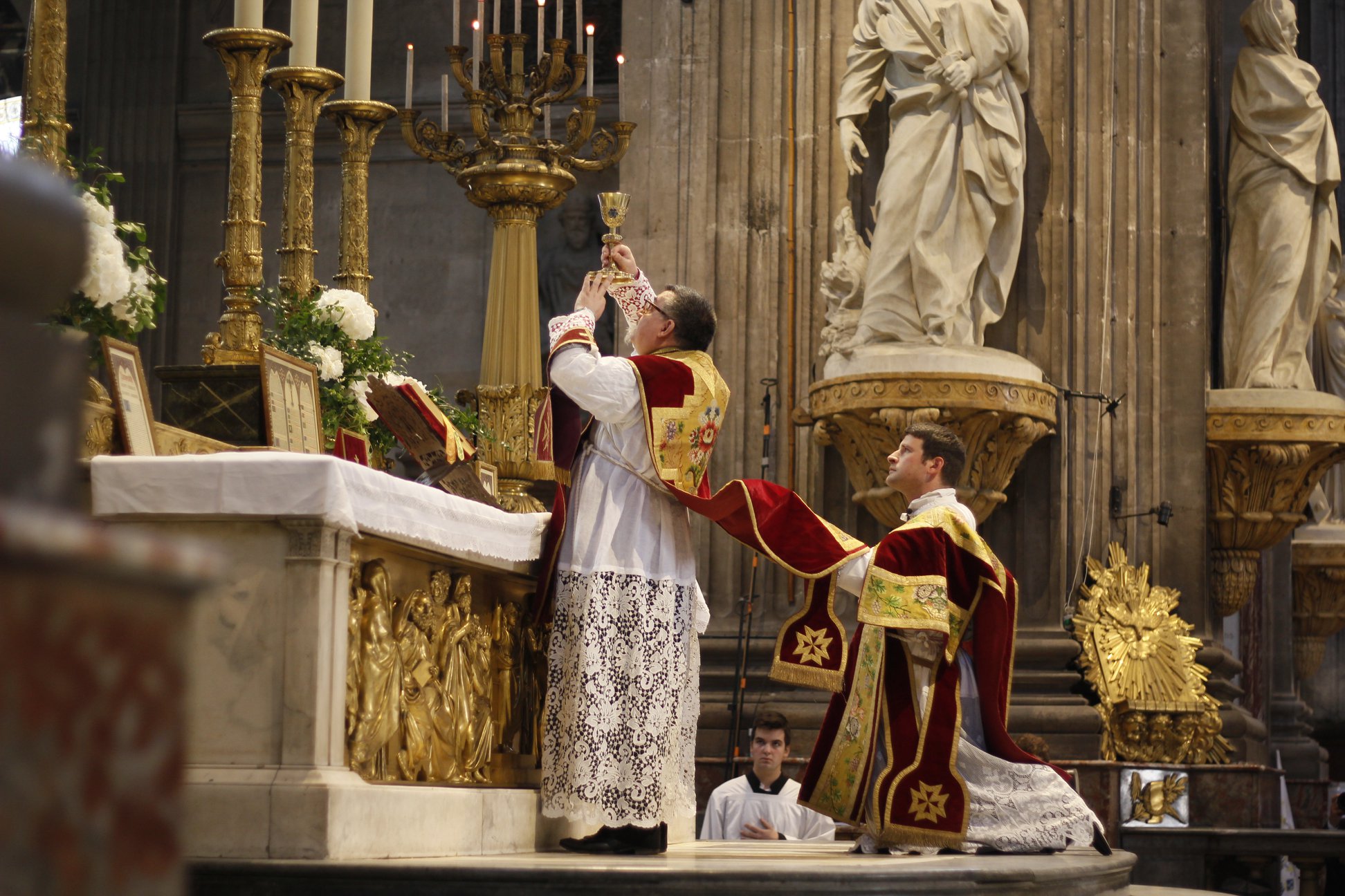 Messe célébrée en l’église Saint-Sulpice (Paris) par l’abbé Jean-Marc Fournier, diocèse aux Armées, assisté par l’abbé Marin Cottard, IBP comme diacre et l’abbé Guilhem de Labarre, FSSP, comme sous-diacre. L’abbé Alexis Garnier, aumônier général, a donné le mot d’envoi avant la messe.