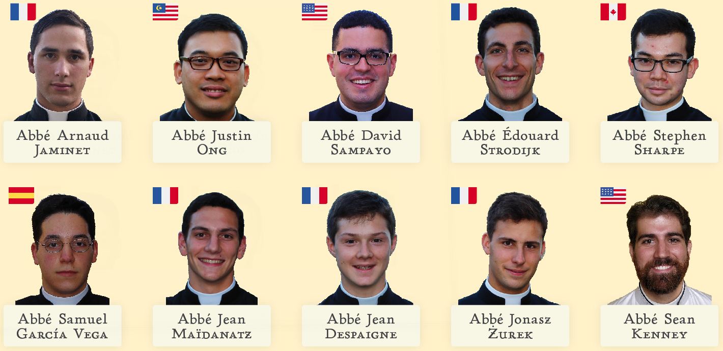 Le 2 juillet prochain, le Cardinal Raymond Burke ordonnera 10 prêtres pour l’Institut du Christ Roi dont 5 Français les abbés Jean Despaigne, Arnaud Jaminet, Jean Maïdanatz, Edouard Strodijk, Jonasz Zurek, mais aussi 2 Américains, 1 Canadien, 1 Espagnol et 1 Malaysien. Comme chaque année, les futurs prêtres adressent un message aux fidèles et amis de l’Institut :