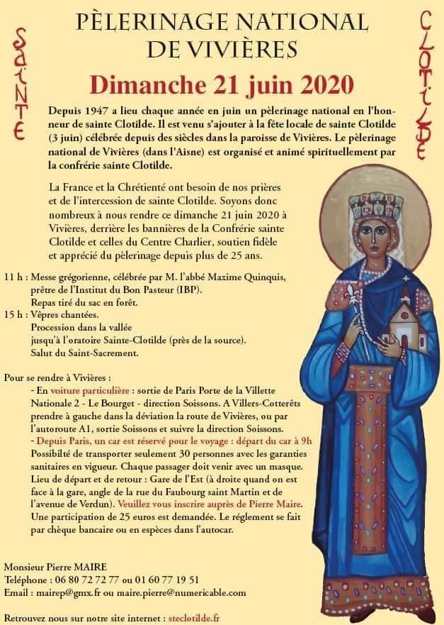 Le prochain pèlerinage de la Confrèrie Sainte Clotilde à Vivières (02) est fixé au dimanche 21 juin 2020.