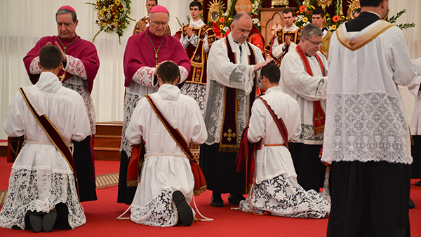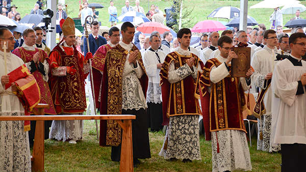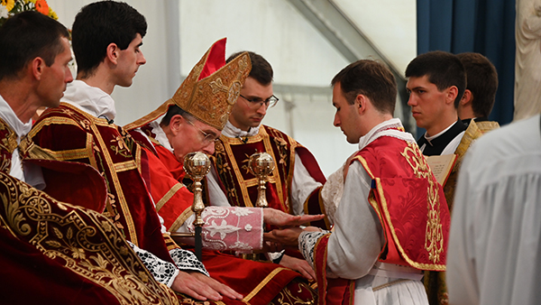 Ce 29 juin 2020 en la fête de Saints Pierre et Paul, Mgr Tissier de Mallerais, évêque auxiliaire de la Fraternité Sacerdotale Saint-Pie X, a célébré la messe pontificale d’ordination de 9 prêtres de la Fraternité Saint-Pie X et un capucin de Morgon (France) dont 6 Français pour la FSSPX les abbés Jules Doutrebente, Louis Gravrand, Grégoire Molin, Antoine Paccard, Benoît Philippon et Xavier Rességuier.