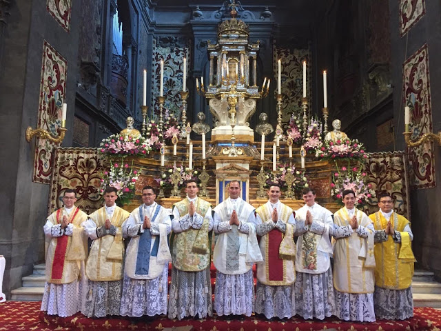 Neuf prêtres ont ordonnés par le cardinal Raymond Leo Burke ce jeudi 2 juillet en l’église Saints Michel et Gaetan de Florence (Italie) dont 5 Français, les chanoines Jaminet, Strodÿk, Maïdanatz, Despaignes et Zurek.