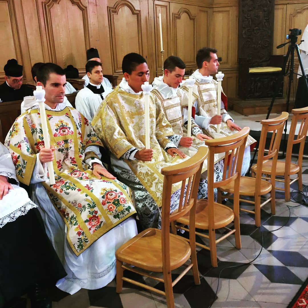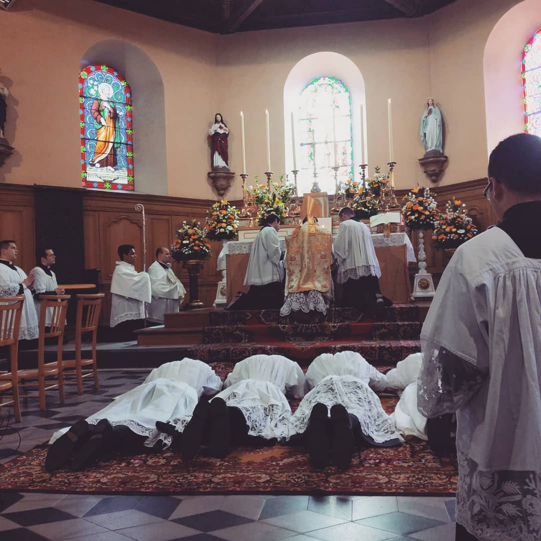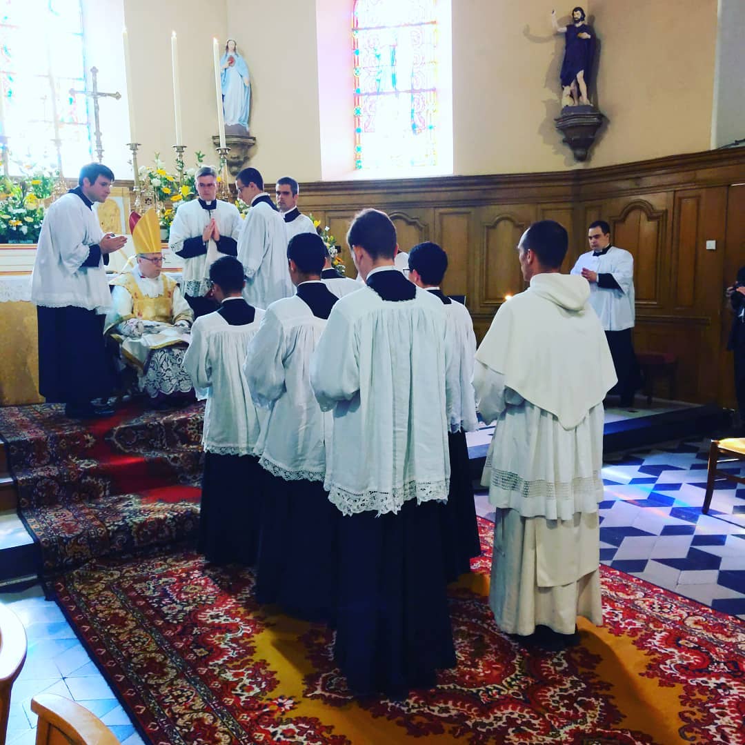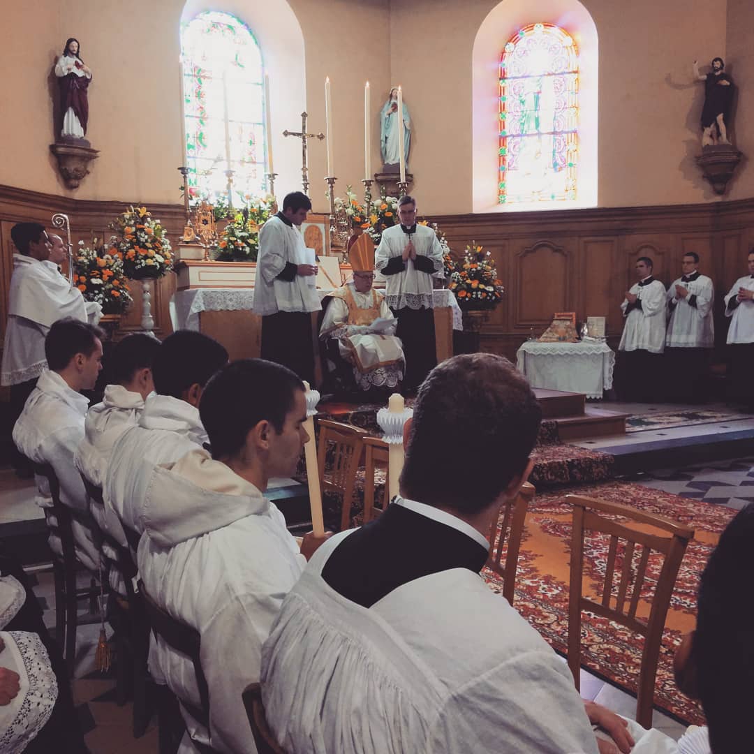 Ce vendredi 3 juillet en l’église Saint Jean-Baptiste de Courtalain, 10 séminaristes de l’Institut du Bon Pasteur et 1 frère de la Fraternité Saint Vincent Ferrier ont reçu des ordres mineurs de Mgr Czeslaw Kozon, évêque de Copenhague (Danemark). Il a également ordonné 4 sous-diacres : 3 de l’Institut du Bon Pasteur et 1 frère de la Fraternité Saint Vincent Ferrier.