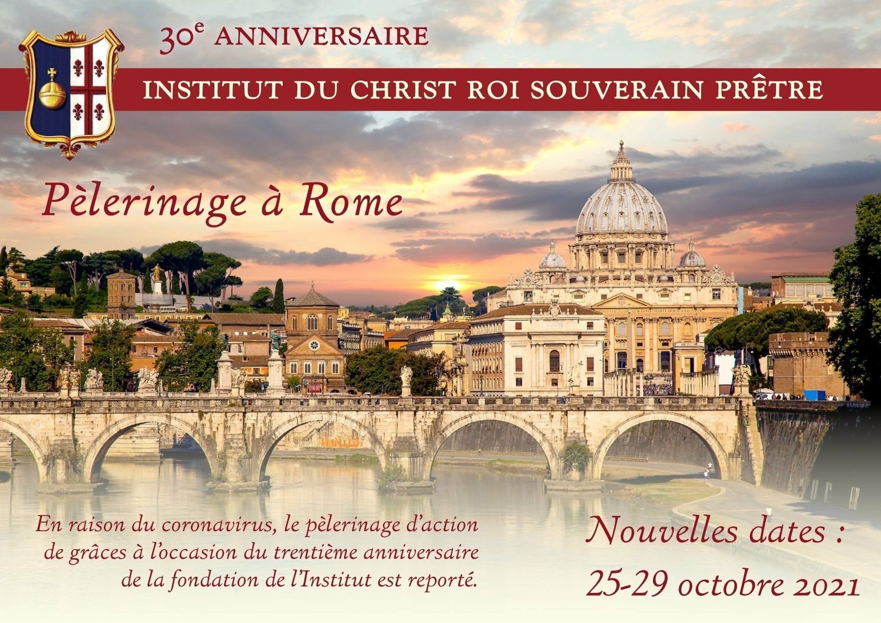 Accueil » Nos archives » Agenda: Report du Pèlerinage anniversaire de l’Institut du Christ Roi Summorum Pontificum Agenda: Report du Pèlerinage anniversaire de l’Institut du Christ Roi En raison des conditions sanitaires et du risque d’annulation, l’Institut du Christ Roi reporte le Pèlerinage organisé pour son 30è anniversaire de décembre 2020 à octobre 2021. Article précédentLe bilan financier du Covid dans les diocèses Article suivantOrdinations pour la Fraternité Saint Pierre 29 septembre 2020