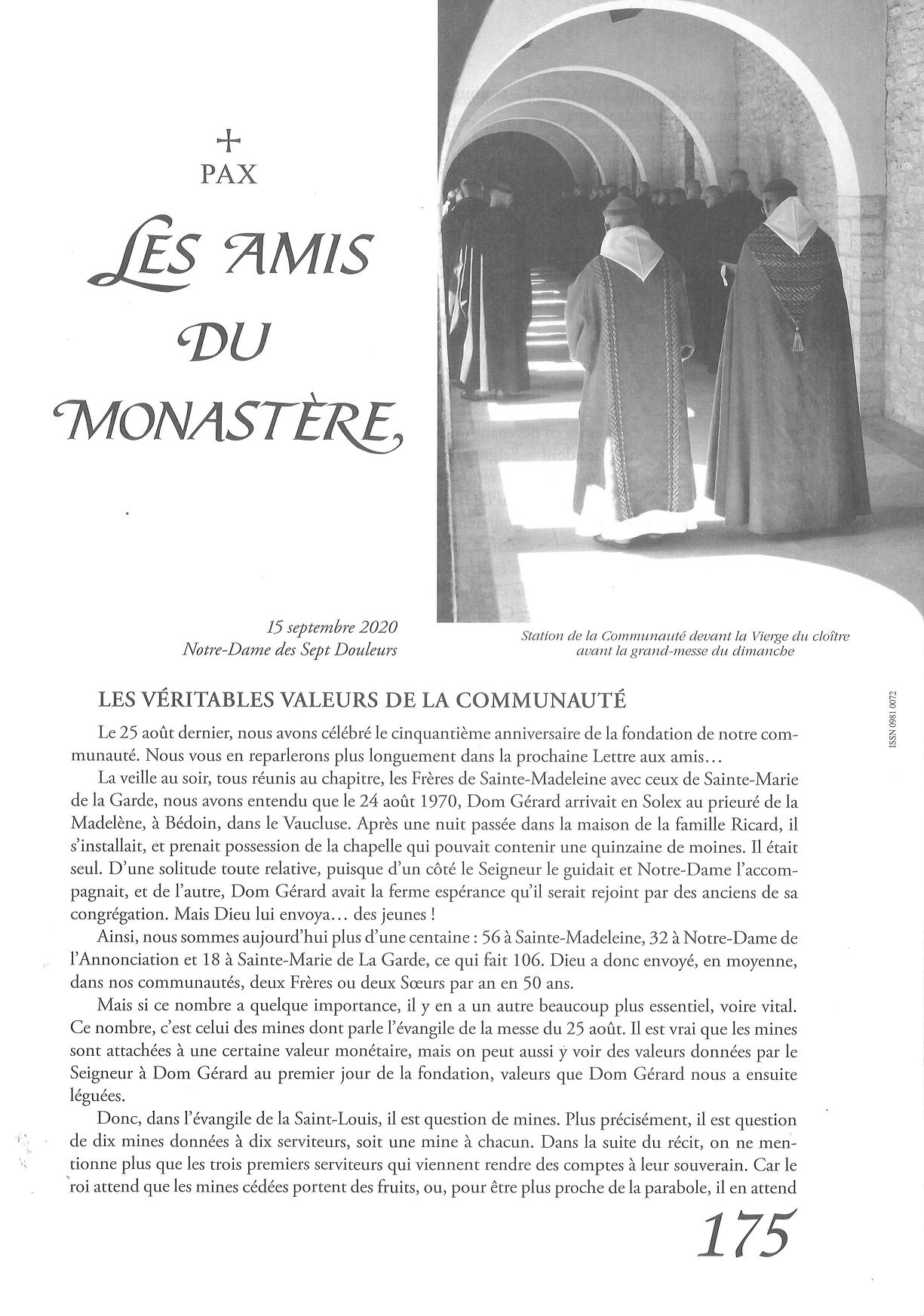 La lettre des Amis du Monastère revient sur le 50è anniversaire de la fondation de l’Abbaye Sainte Madeleine du Barroux par Dom Gérard en août 1970. Dom Louis-Marie évoque à l’occasion de cet anniversaire l’attachement de Dom Gérard à l’Eglise permettant au fil de temps à l’abbaye de retrouver sa juste place.