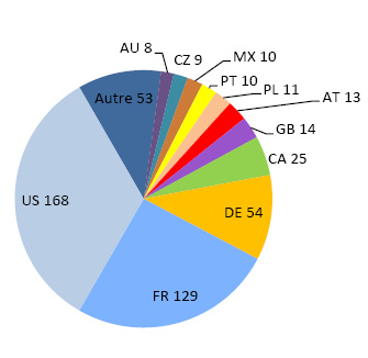 Les membres de nationalité américaine sont 168 (1/3 des membres) suivi par les français 129.