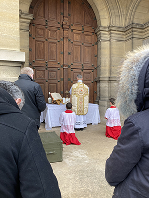 Notre confrère Paix Liturgique évoque une fois encore l’application du Motu Proprio à Saint Germain en Laye où depuis quelques semaines les fidèles assistent régulièrement à la messe dehors alors qu’ils demandent une messe en application du Motu Proprio Summorum Pontificum depuis près de 15 ans. Le changement d’évêque à venir (La démission de Mgr Aumonier a été acceptée par le Pape François en décembre) pourra nous l’espérons faire évoluer cette situation.