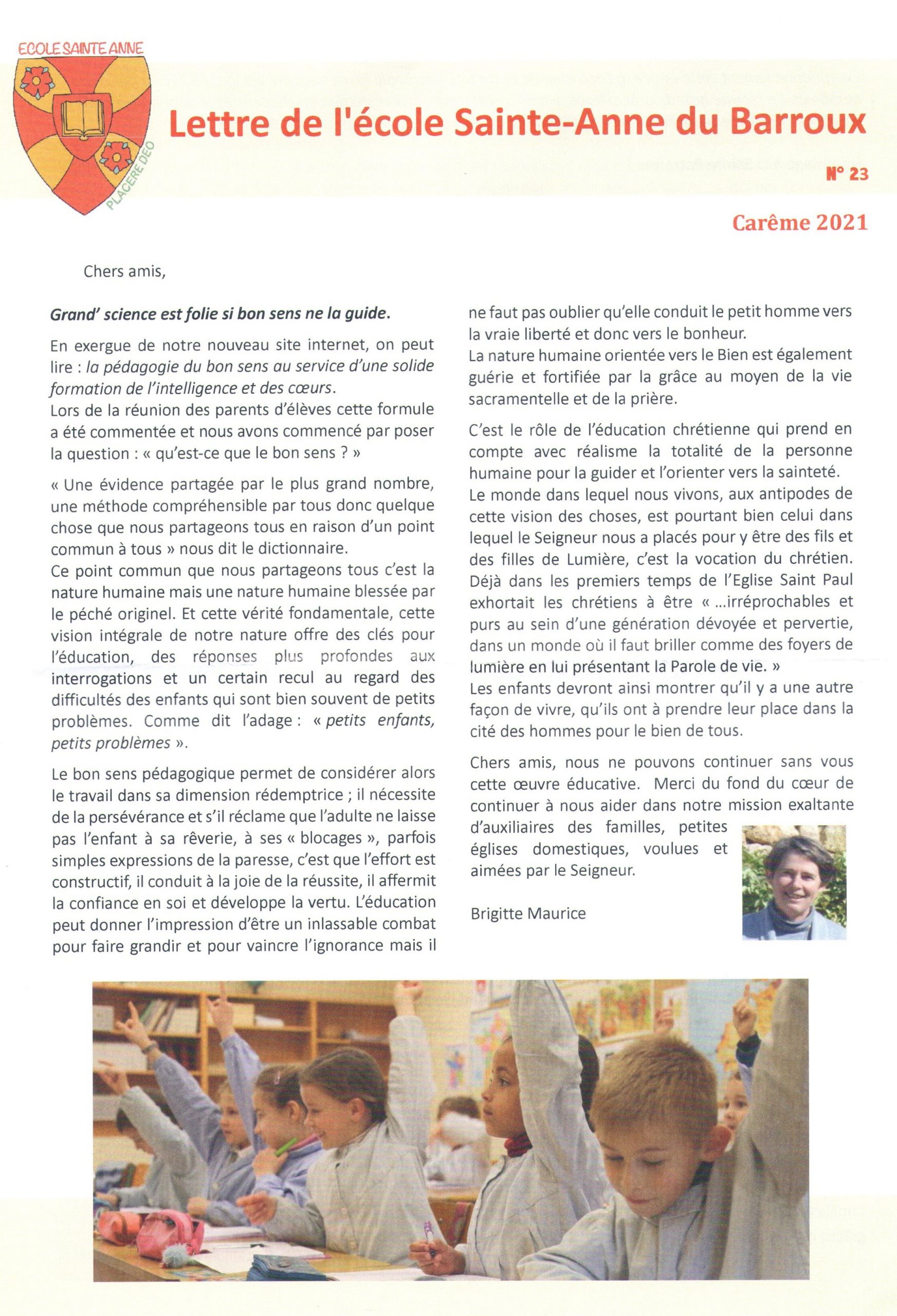 Dans la lettre aux amis de l’école, Mme Maurice, directrice de l’école (et également co-fondatrice du Cours Sainte-Anne), nous livre une belle réflexion sur le bon sens.