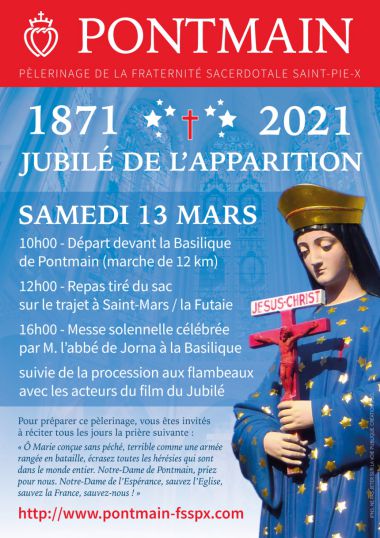 La Fraternité Saint-Pie X organise un pèlerinage à Notre-Dame de Pontmain à l’occasion des 150 ans des apparitions le samedi 13 mars 2021.