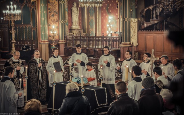 L’usus antiquior, lorsqu’il est célébré avec recueillement, nous rappelle que la liturgie ne nous appartient pas. Que nos célébrations, comme disent les préfaces, sont une participation à la liturgie céleste. La multiplicité des rites de la messe fait du prêtre plus un serviteur qu’un maître dans ce domaine. Les répétitions, les redondances même, me rappellent le bafouillement des prophètes de l’Ancien Testament devant la transcendance divine quand elle se manifeste à eux : dans la liturgie, nous sommes dépassés,nous mettons notre main sur notre bouche face au Mystère,comme autrefois Jérémie ou Ezéchiel. C’est le sens du chant– et Joseph Ratzinger l’a souligné à de multiples reprises –qui sublime la parole, dépassée par la profondeur de ce qui se produit ; sublimation qui s’achève dans le silence du canon, voilé parfois par les motets qui l’accompagnent.