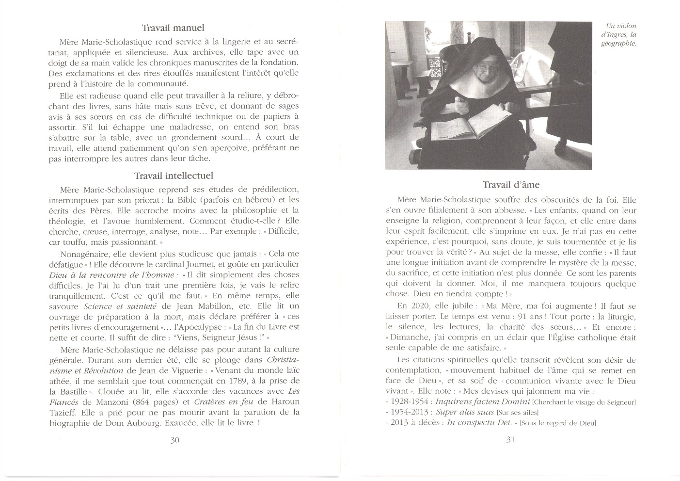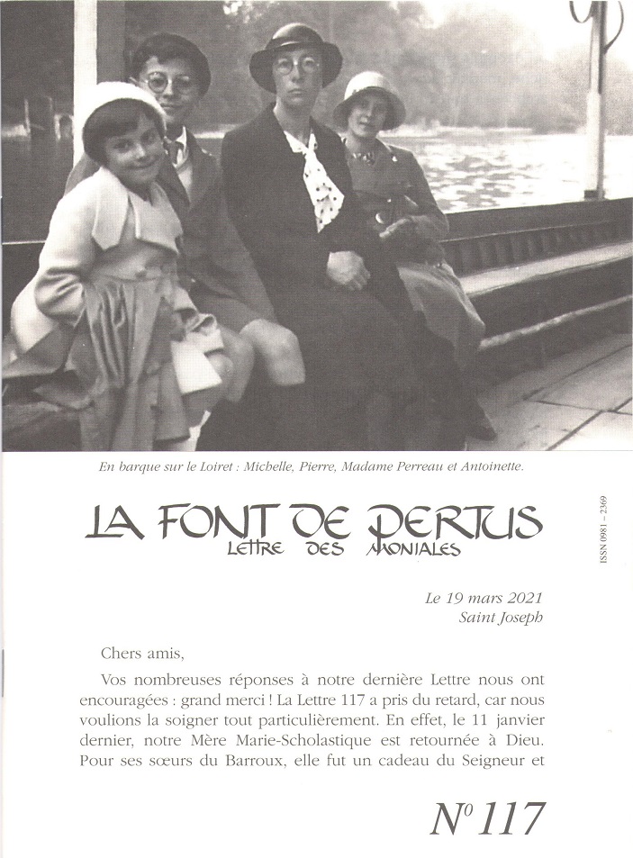 Dans la dernière lettre des bénédictines du Barroux, La font de Pertus (n°117, Mars 2021), les soeurs rendent un hommage appuyé à Mère Marie-Scholastique qui a été rappelée à Dieu en janvier dernier. Mère Marie-Scholastique a été la dernière prieure des bénédictines du Saint-Sacrement de Caen (pendant plus de 25 ans).