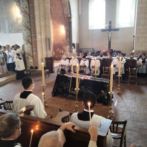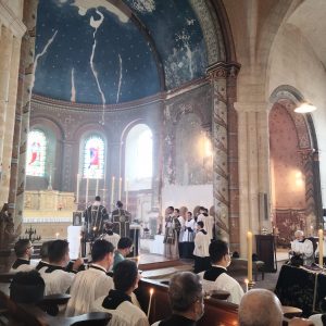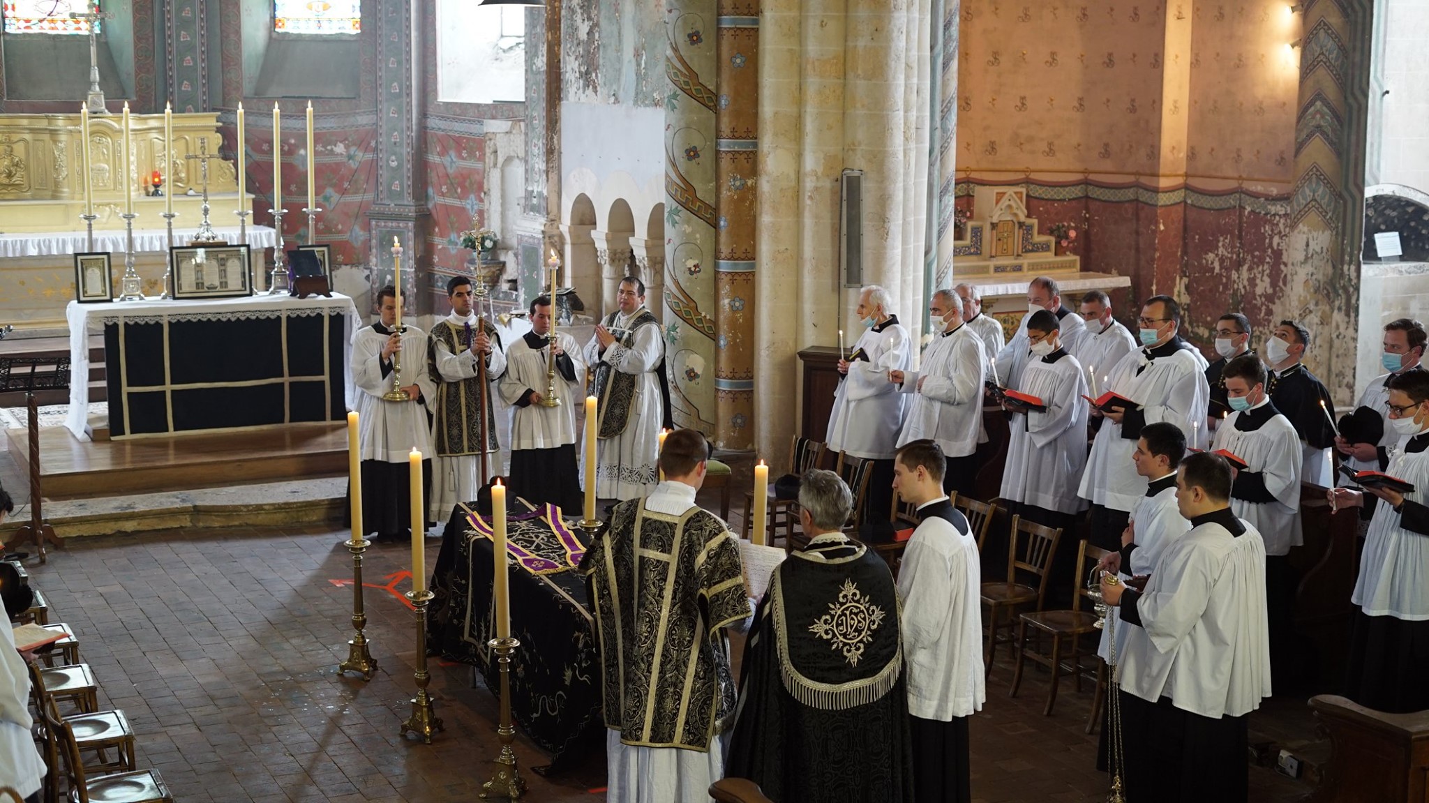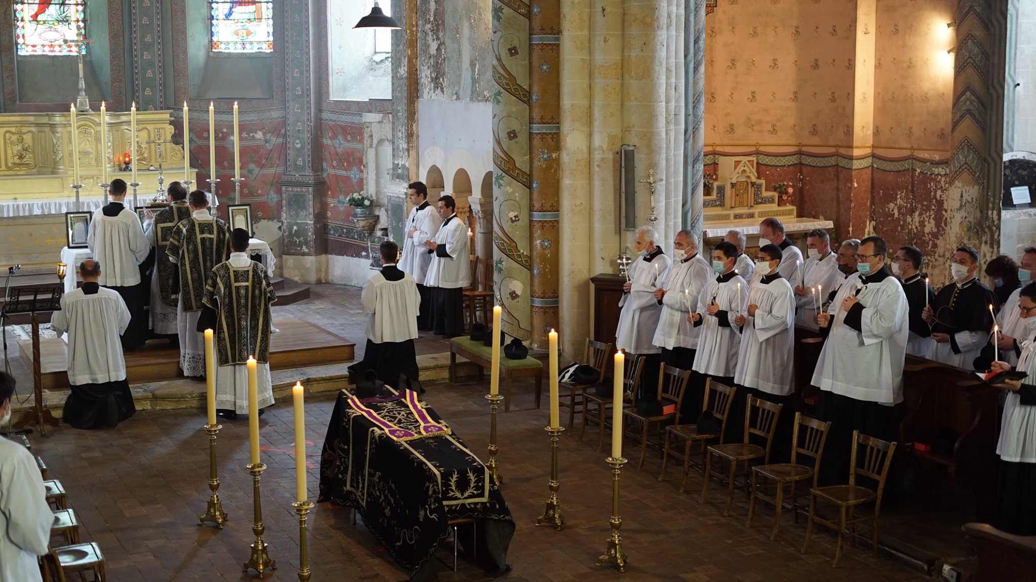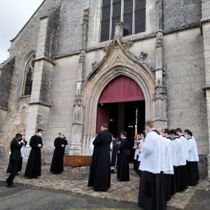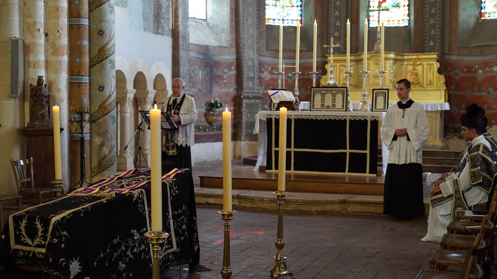 La messe solennelle était célébrée par l’abbé Vella, assisté de monsieur l’abbé Strapazzon et d’un séminariste de Courtalain. L’absoute était célébrée par l’abbé Héry. L’abbé Laguerie a retracé dans le sermon le parcours de l’abbé Aulagnier, à « l’activité infatigable (…) Il ne s’arrêtait jamais« .