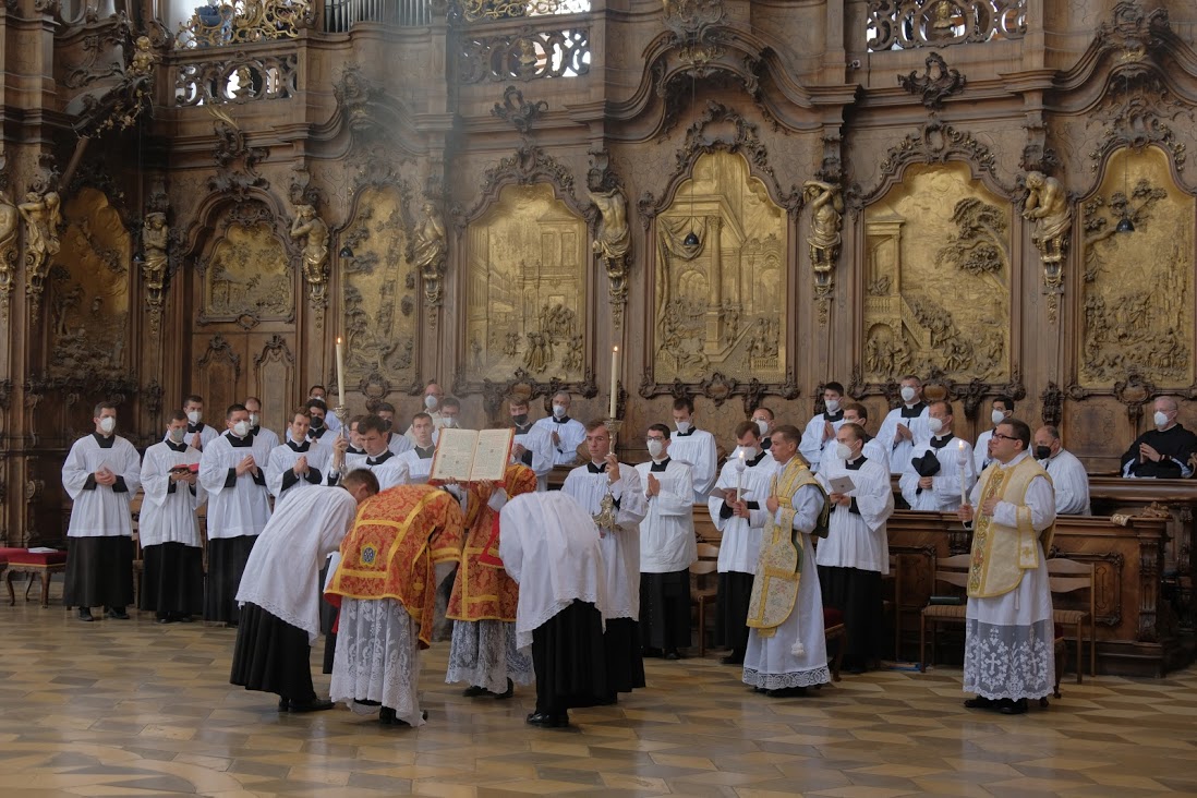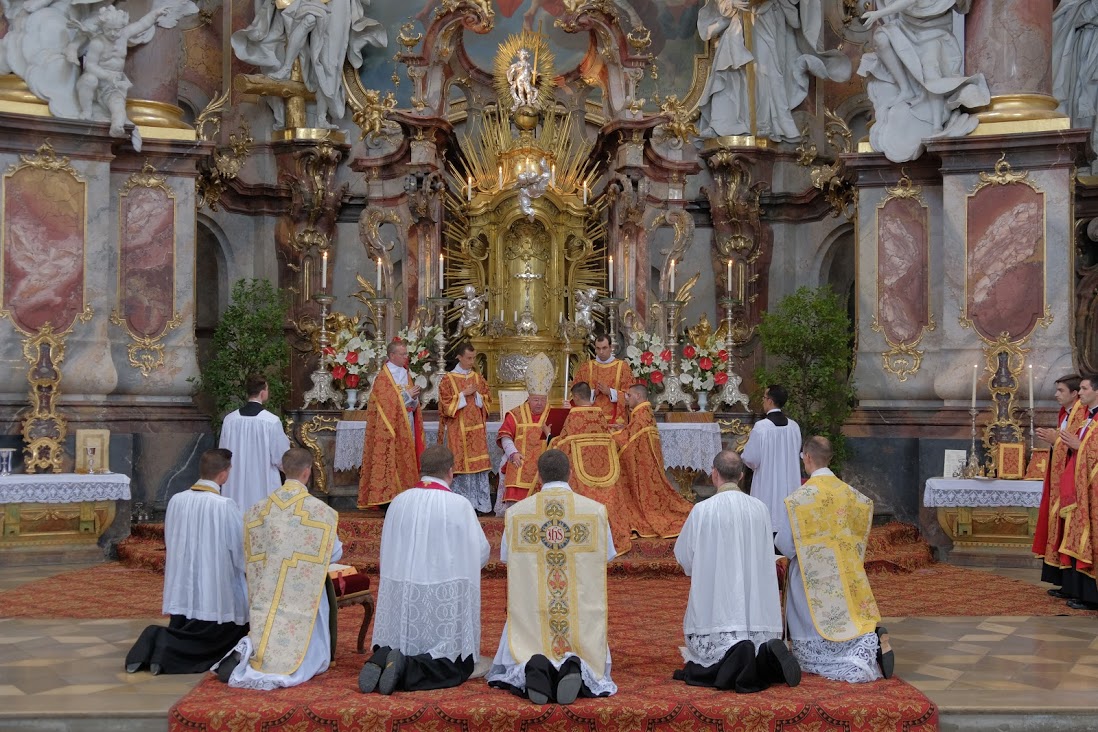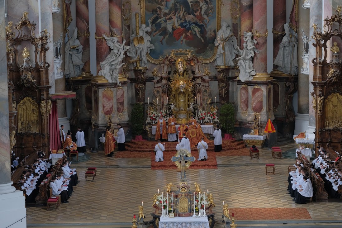 Mgr Wolgang Haas, archevêque de de Vaduz, a ordonné 3 prêtres pour la Fraternité Saint-Pierre ce samedi 26 juin en l’abbatiale d’Ottobeuren (Allemagne), dont un français l’abbé Charles Berger de Gallardo. Après des ordinations aux Etats-Unis (5 prêtres) en mai et au Mexique (1 prêtre) et juin, cette troisième messe d’ordination de la Fraternité Saint-Pierre sera suivie par une dernière ordination en Nouvelle-Zélande début juillet (1 prêtre).