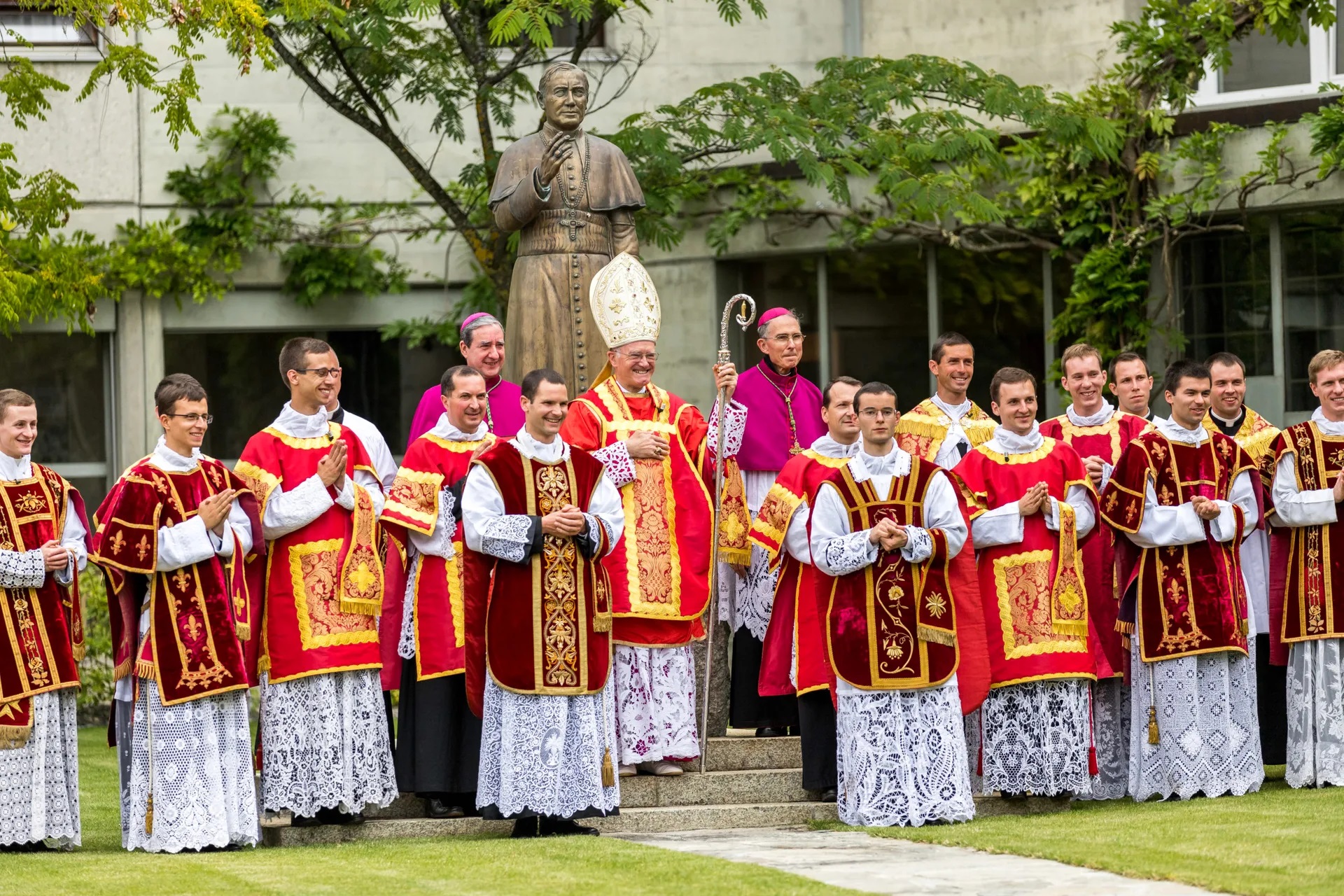 Jeudi 1er juillet, fête du Précieux Saint, deux séminaristes ont été prêtres de la Fraternité Saint-Pie X (dont un Français) par Mgr Bernard Fellay au Séminaire Saint-Pie X d’Ecône. Mgr Fellay a également ordonné 8 diacres (dont 6 Français).