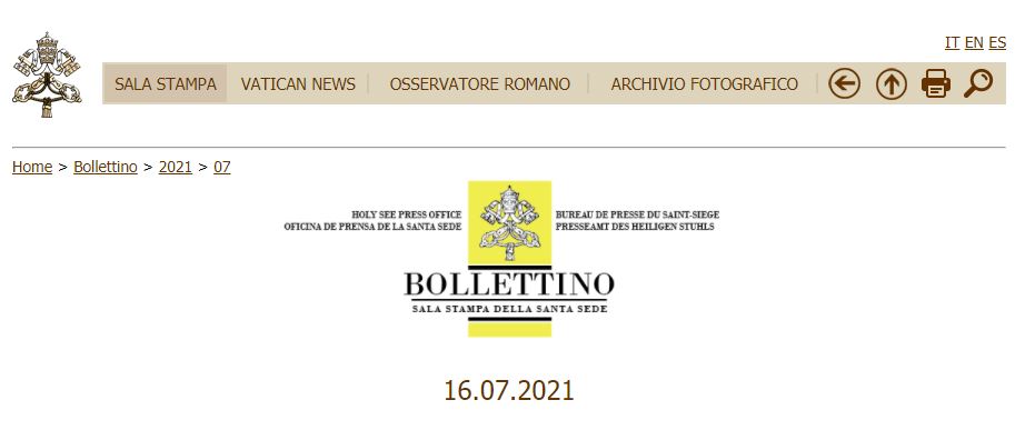 Le texte sur le site du Vatican (Italien ou Anglais pour l’instant)