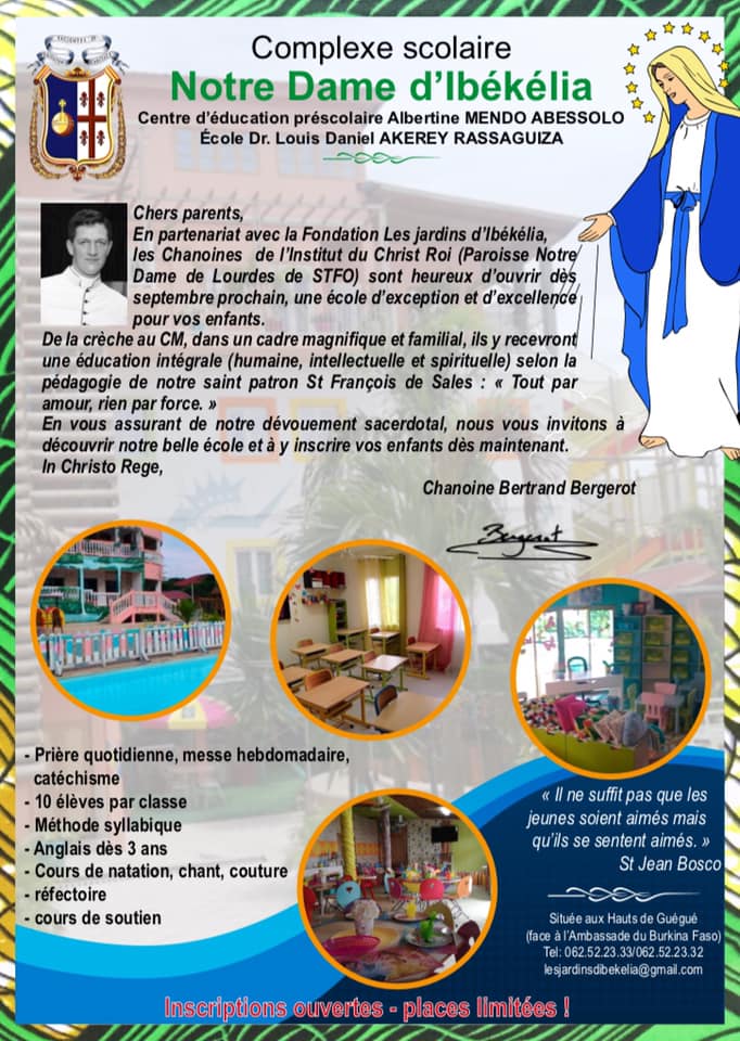 En septembre, l’Institut du Christ Roi ouvre une nouvelle école à Libreville.