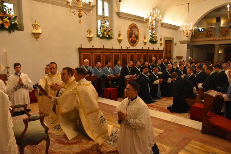 Les prêtres et diacres de l’Institut du Christ Roi se sont réunis à Gricigliano pour leur chapitre annuel du 23 au 28 août. Dans ce contexte particulier, il a permis aux chanoines de reserrer leurs liens avant de repartir dans leur apostolat aux quatre coins du monde. Deux évêques sont intervenus pendant la semaine : le cardinal Betori, archevêque de Florence, et, Mgr Giovannetti, évêque émérite de Fiesole.