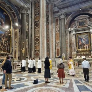 ce n’est pas la première fois, c’est permis à condition que ce soit dans ces chapelles dont le couloir est emprunté par les touristes. La Fraternité Saint Pie X,lors d’un pèlerinage avant le confinement a été autorisée à condition que le prêtre prenne la chasuble à ailes que leur donne le responsable, et évidemment leur livre, car le proposé est en italien. le problème ce sont les touristes qui passent et repassent , regardent, sans un signe de Croix, là où est présent Jésus Hostie, source de notre salut..