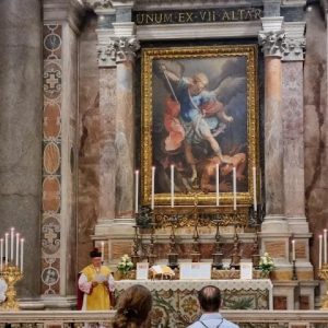 C’est apparemment l’une des premières messes traditionnelles célébrées à Saint-Pierre de Rome depuis le Motu proprio du 16 juillet dernier. Une messe tridentine a été célébrée sur l’autel dédié à l’Archange Saint-Michel à Rome pour la fête du chef de la milice céleste, le mercredi 29 septembre dernier. Même, si, à proprement parler, la messe tridentine n’est pas interdite dans cette basilique romaine, sa célébration a tout de même valeur de symbole. Prochain test: la célébration prévue le samedi 29 octobre prochain à l’autel de la Chaire de Saint-Pierre dans le cadre du Pèlerinage Summorum Pontificum qui reste maintenu.