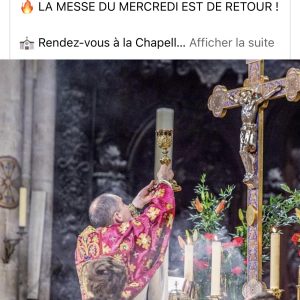 La messe traditionnelle célébrée le mercredi soir à 19h45 à Saint François Xavier est de retour à l’église Notre-Dame du Lys (15ème arrondissement de Paris) après avoir été supprimée. Une bonne nouvelle !