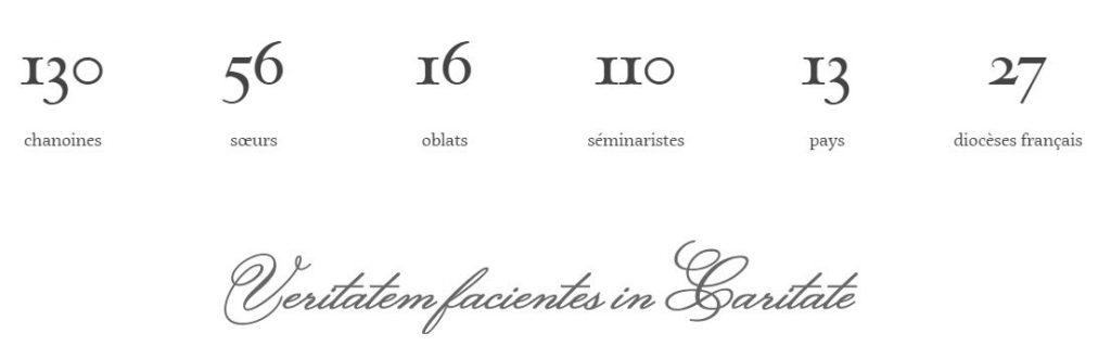 La Province de France indique que l’Institut du Christ Roi compte 110 séminaristes, 130 chanoines (prêtres), 56 soeurs (adoratrice du Coeur Royal). L’Institut oeuvre dans 13 pays et dans 27 diocèsesen France.