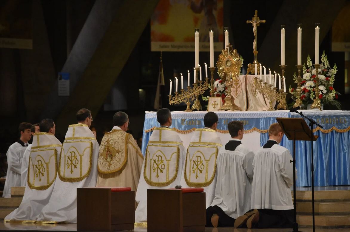 Lundi 1er novembre, en la fête de la Toussaint, une messe solennelle a été célébrée le matin dans la basilique Saint-Pie X, suivie d’un chapelet médité à la grotte pour clôturer ce très beau pèlerinage.