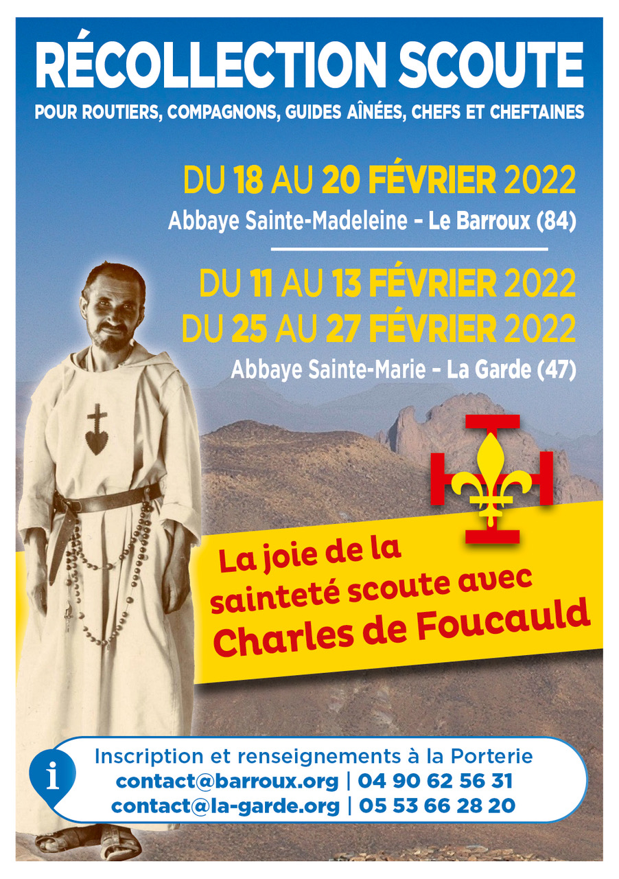 Comme les années passées, les abbayes Sainte-Madeleine du Barroux et Sainte-Marie de la Garde de Saint-Pierre de Clairac accueillent des récollections scoutes prêchées par les moines pour les routiers, guides aînées, chefs et cheftaines.