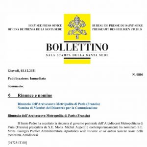 Ce qui était prévisible est arrivé : le Pape François a accepté la démission de Mgr Michel Aupetit. La nouvelle est tombée en fin de matinée. On ne sait pas davantage sur les conditions de l’acceptation de la renonciation à la charge présentée par l’archevêque de Paris.
