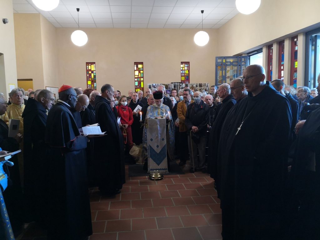 Dans l’après-midi a eu lieu la bénédiction de la fresque du narthex et du petit cloître, selon le rite romain par son Éminence le cardinal Robert Sarah, et selon le rite slavon.