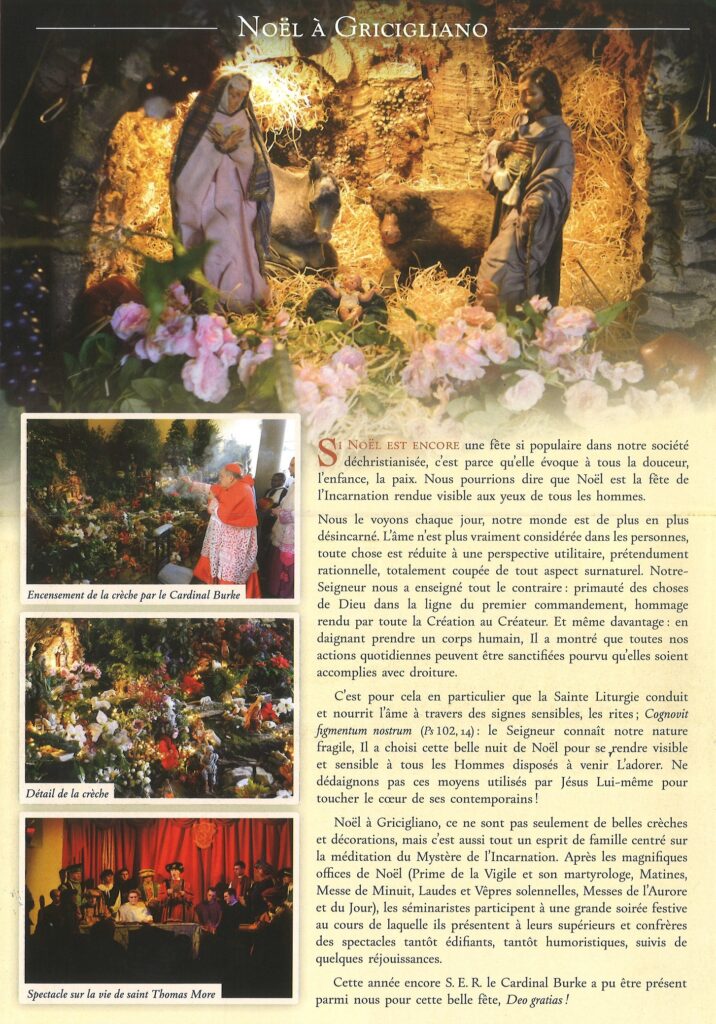 Dans la dernière lettre aux amis du Séminaire Saint-Philippe Néri (février 2022), les séminaristes reviennent sur la fête de Noël où ils rappellent : « Noël à Gricigliano, ce ne sont pas seulement de belles crèches et décorations, mais c’est aussi tout un esprit de famille centré sur la méditation du Mystère de l’Incarnation ». Dans ce contexte troublé, il faut toujours se recentrer sur l’essentiel et ne jamais perdre de vue la profondeur des mystères que l’Eglise nous donne à méditer.