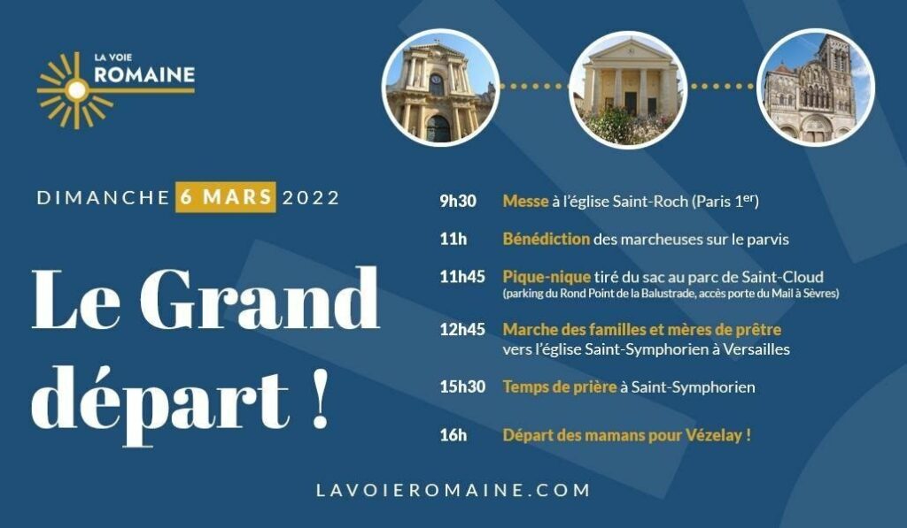L’Association La Voie romaine annonce que la marche des Mères de prêtres partira de Paris le dimanche 6 mars depuis l’église Saint-Roch à Paris (à l’issue de la messe paroissiale).