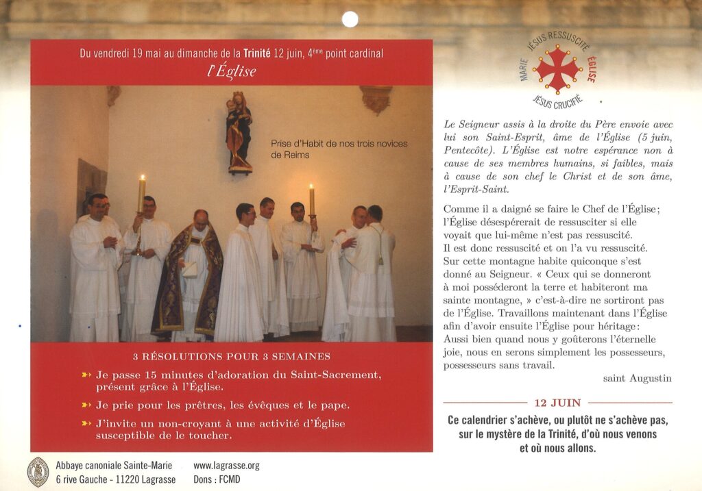 Accueil » Nos archives » Calendrier de Carême (4) Summorum Pontificum Calendrier de Carême (4) Les Chanoines Réguliers de la Mère de Dieu (Abbaye de Lagrasse) ont publié de Carême avec quelques pensées spirituelles et quelques bonnes résolutions jusqu’au dimanche de la Sainte-Trinité. Abbaye de Lagrasse Article précédentParis : journée d'entraide et de l'amitié de l'Oeuvre des Campagnes ce 17 mai Article suivantMgr Laurent Ulrich confère les confirmations selon la forme traditionnelle 17 mai 2022