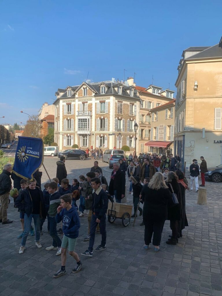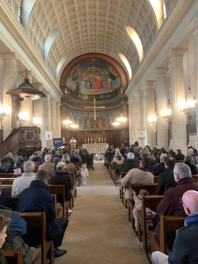 Après un déjeuner dans le parc de Saint-Cloud, le cortège est parti pour Versailles accompagné par de nombreuses familles avec enfants. D’autres fidèles les ont rejoint à l’église Saint Symphorien de Versailles pour un temps de prière : 3 prêtres dont les mères font l’ensemble de la marche étaient présents. Les Mères ont quitté ensuite la région parisienne pour la Bourgogne pour une grosse jonction en voiture. Elles vont marcher pendant 2 mois plus de 1000 km pour arriver à Rome le 1er mai.
