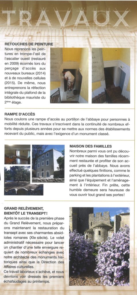 La lettre revient aussi sur les derniers travaux de l’Abbaye :