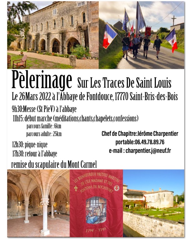 Le pèlerinage de tradition se déroulera le samedi 26 mars au départ de l’Abbaye de Fontdouce à Saint Bris des Bois (17770).