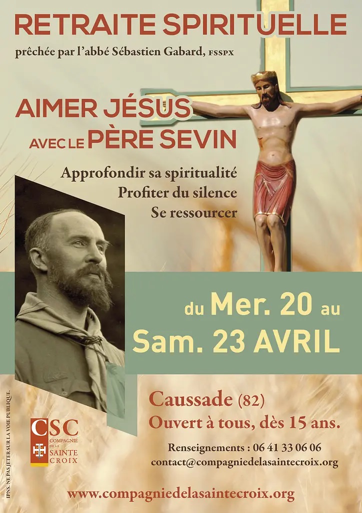 Accueil » Nos archives » Agenda: Retraite scoute à Caussade Summorum Pontificum Agenda: Retraite scoute à Caussade Pour la Semaine Sainte, une retraite de spiritualité scoute est proposée à la Maison Saint Joseph de Caussade (82). La Compagnie Sainte Croix propose de cheminer avec le Père Sevin. L’aumônier est l’abbé Sébastien Gabard, FSSPX. Compagnie de la Sainte Croix Article précédentUn proche du Pape critique Joe Biden Article suivantNomination de Mgr Jean-Marc Micas sur le siège de Tarbes et Lourdes 30 mars 2022