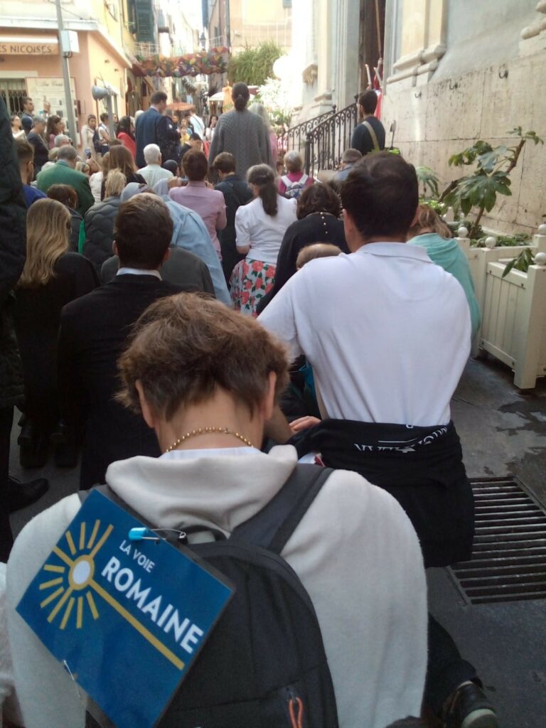 Les Mères de Prêtres de La Voie romaine poursuivent leur périple vers Rome. Elles ont passé le triduum pascal à Nice notamment aux offices de la Semaine Sainte célébrés par les prêtres de l’Institut du Christ Roi à l’église Saint Jacques le Majeur (le Gésù) et la chapelle du Saint-Suaire à Nice. Les marcheuses sont désormais en Italie. Leur arrivée est prévu à Rome le samedi 30 avril 2022.